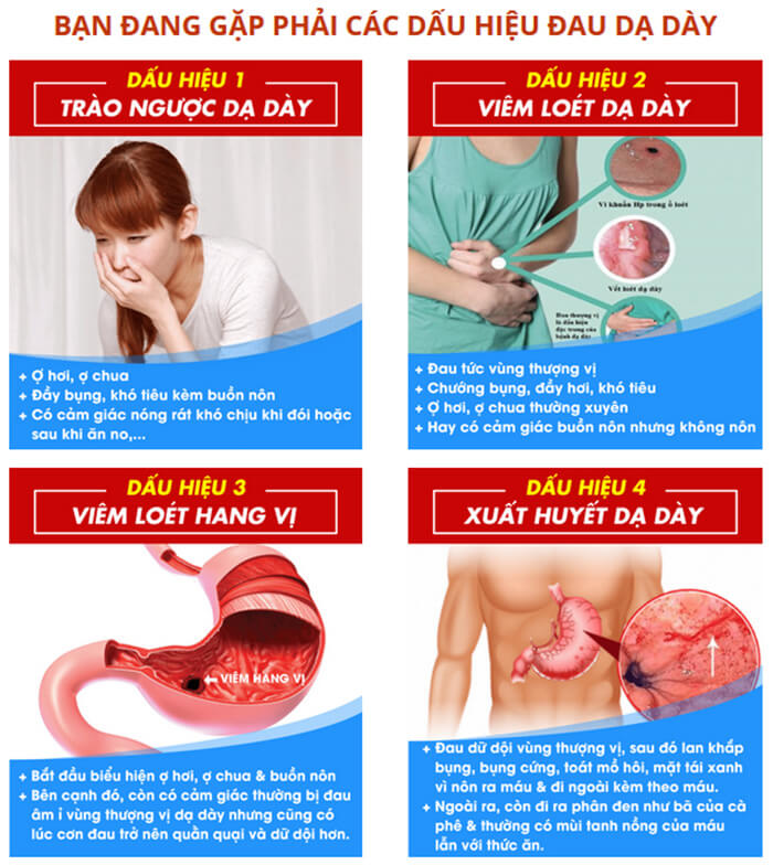 - Giảm bớt ngay lập tức các cơn đau của bệnh dạ dày cấp và mãn tính hay bệnh hành tá tràng, viêm loét dạ dày.