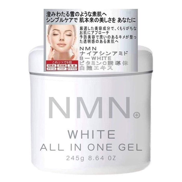 - Gel dưỡng NMN White All in one là một sản phẩm làm đẹp đang làm mưa làm gió tại thị trường châu Á. Gel siêu dưỡng với thành phần NMN quý giá kết hợp vitamin C, Niacinamide, chiết xuất gạo lên men, tổ hợp B-white. Giúp nâng tông da, dưỡng trắng, trị thâm sạm. Nuôi dưỡng da khỏe mạnh, chống oxy hóa, đẩy lùi dấu hiệu lão hóa.