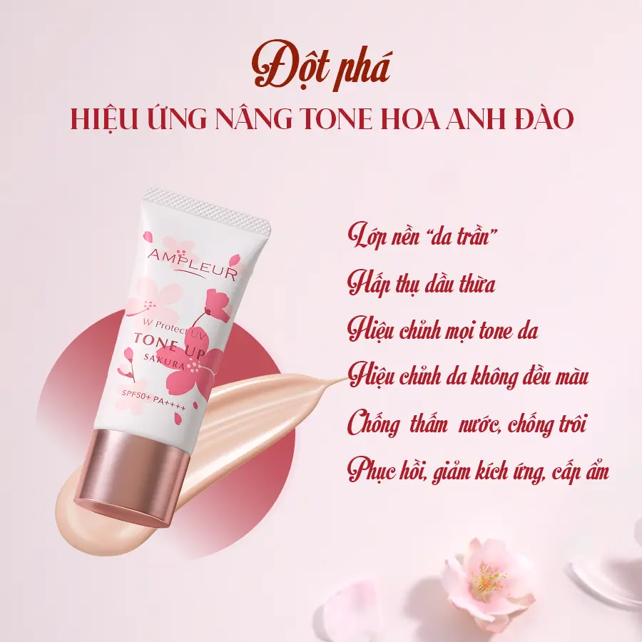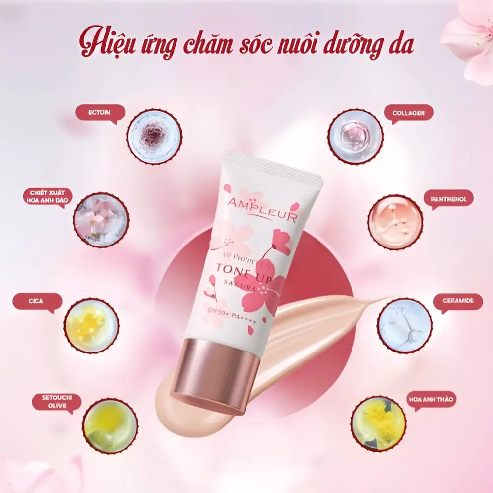 | Tên sản phẩm | Kem chống nắng Ampleur W Protect UV ToneUp Sakura – Nâng tông, chống nắng SPF50 PA++++ 30g Nhật Bản |