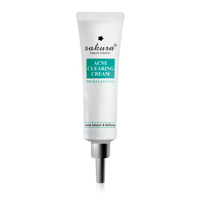 - Kem trị mụn Sakura Acne Clearing Cream - sản phẩm đặc trị mụn với chiết xuất thảo dược tự nhiên giúp giảm viêm sưng, kích ứng, làm khô nhân mụn và giúp loại bỏ mụn nhanh chóng, dễ dàng, hiệu quả.