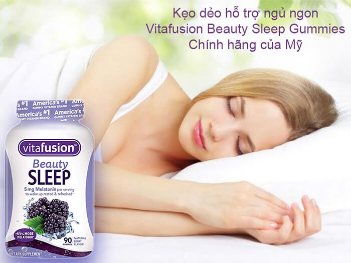 - Chính vì vậy, bạn cần bổ sung ngay kẹo dẻo Vitafusion Beauty Sleep có chứa thành phần Melatonin giúp hỗ trợ điều trị chứng mất ngủ và chống stress hiệu quả.