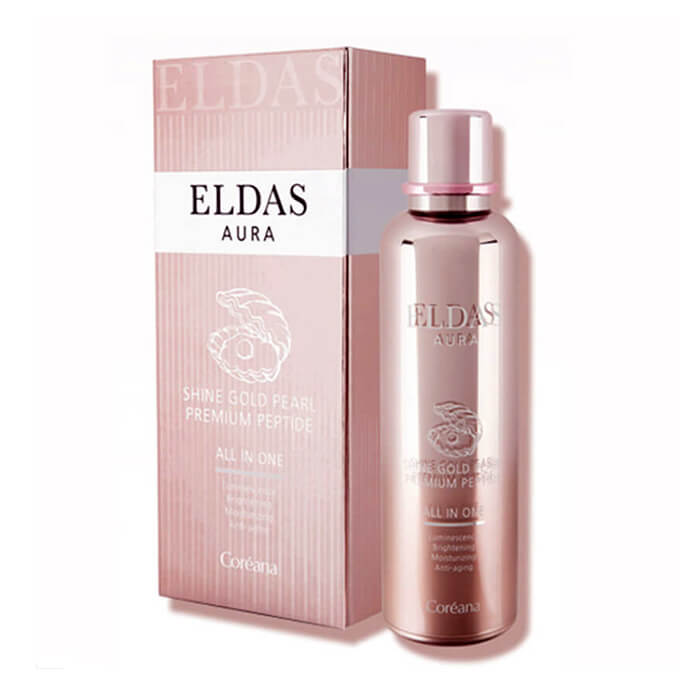 - Tế Bào Gốc Eldas Aura Coreana All In One được điều chế với công nghệ làm đẹp hiện đại từ Hàn Quốc, bổ sung EGF, Peptide, Collagen ngăn chặn hiệu quả các dấu hiệu lão hóa da như tàn nhang, nám, vết sạm, sần sùi, chảy xệ, oxy hóa da.
