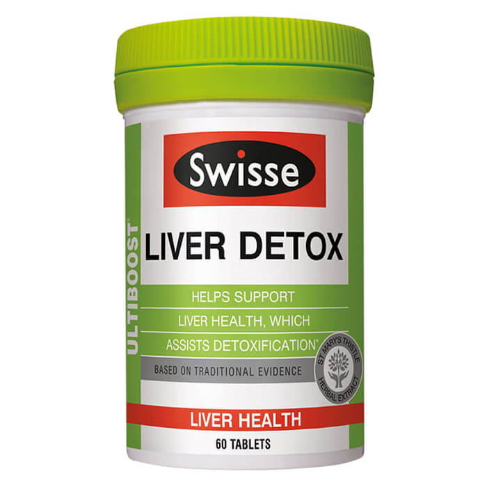 - Viên uống thải độc gan Swisse Liver Detox 60 viên của Úc chứa thành phần thảo dược tự nhiên như kế sữa, atiso, nghệ... chất lượng cao hỗ trợ quá trình điều trị các bệnh về gan, tăng cường chức năng của gan, giúp đào thải các độc tố trong gan, thanh lọc cơ thể, làm chậm quá trình lão hóa của gan và các tế bào.