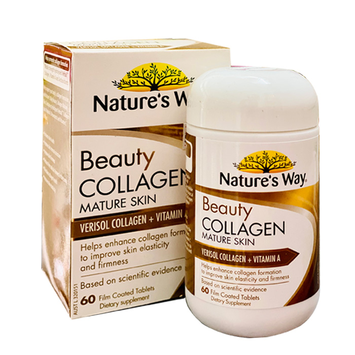 - Viên Uống Nature’s Way Beauty Collagen Mature Skin Của Úc đã được bào chế với gấp đôi lượng collagen của viên uống Beauty Collagen ban đầu của chúng tôi cùng với Vitamin A của chất chống oxy hóa, chất chống oxy hóa của người hùng chăm sóc da (như retinol acetate) và Vitamin C làm giảm các gốc tự do hình thành trong cơ thể.