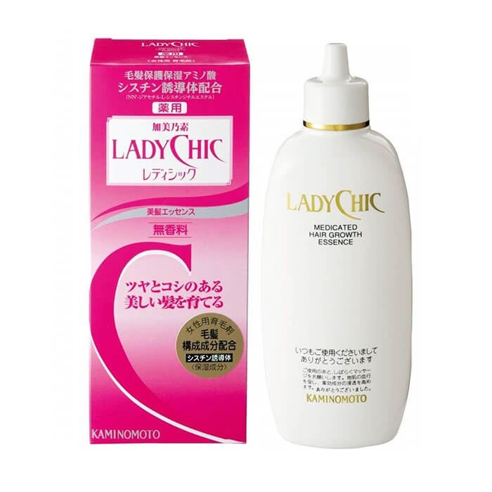 Sản phẩm với công thức mạnh, dành riêng cho chị em bị rụng tóc lâu năm khó điều trị, rụng tóc sau sinh hoặc chứng rụng tóc bất thường khác. Kaminomoto LadyChic giúp thúc đẩy quá trình hình thành và kích hoạt các nang tóc phát triển.