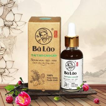 Serum trị mụn Bà Lão là sản phẩm trị mụn vượt trội được nghiên cứu trên bài thuốc bí truyền của người Dao Đỏ bào chế hoàn toàn từ các thảo dược quý: nấm linh chi, nhân sâm, tinh dầu đàn hương,Sản phẩm giúp trị mọi loại mụn bọc, đầu đen, mụn mủ,... và hỗ trợ trị sẹo, nám, thâm mụn, giúp Tái Tạo Da hiệu quả theo 4 bước sau: