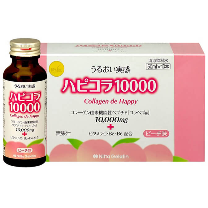 • Collagen De Happy 10000mg của Nhật Bản là một loại Collagen dạng nước uống với hàm lượng cao được sản xuất bởi tập đoàn Nitta Gelatin đến từ Nhật Bản. Collagen de Happy sẽ giúp nuôi dưỡng toàn bộ da và cơ thể từ bên trong, giúp da tươi trẻ, tăng cường đàn hồi, săn chắc và căng mịn.