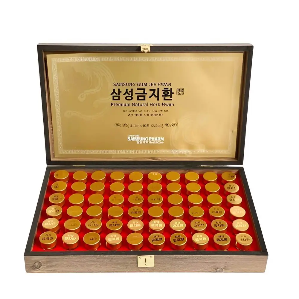 💡 An Cung Ngưu Hoàng Hoàn Samsung Gum Jee Hwan (hộp gỗ 60 viên) là sản phẩm nổi tiếng từ Samsung Pharm (Hàn Quốc). Công thức đặc biệt từ 20 thảo dược quý giúp bổ não, hoạt huyết, tăng tuần hoàn não, ổn định huyết áp và phòng ngừa tai biến.