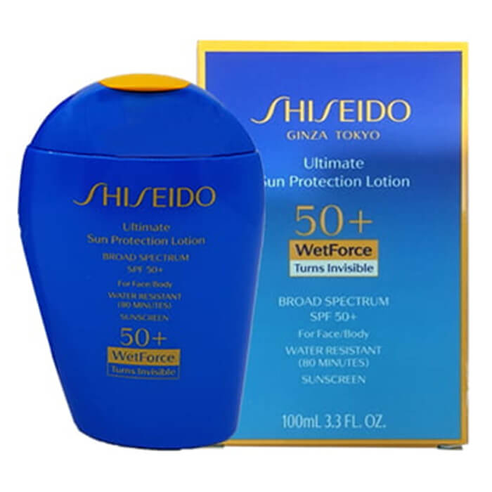 - Kem chống nắng Shiseido Ultimate Sun Protection Lotion 100ml Nhật Bản không gây nhờn rít, an toàn cho da và giúp chống thấm nước lên đến 80 phút hợp đi biển ngày hè. Đây là dòng kem chống nắng nằm trong top 10 sản phẩm chống nắng hiệu quả do tạp chí làm đẹp Elle bình chọn.