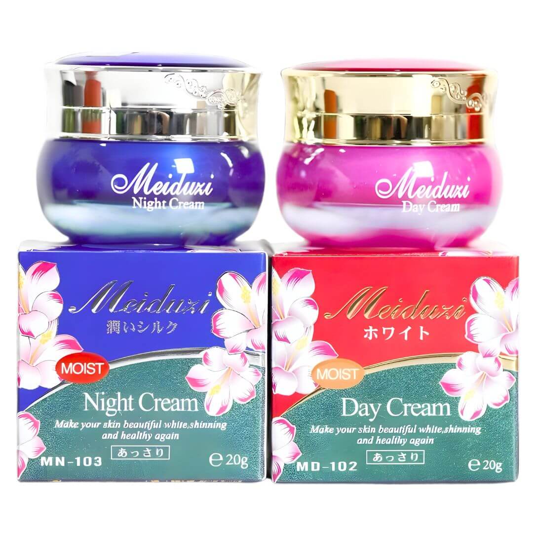 - Bộ kem MEIDUZI ngày đêm còn giúp hạn chế quá trình lão hóa, giảm nếp nhăn một cách đáng kể.