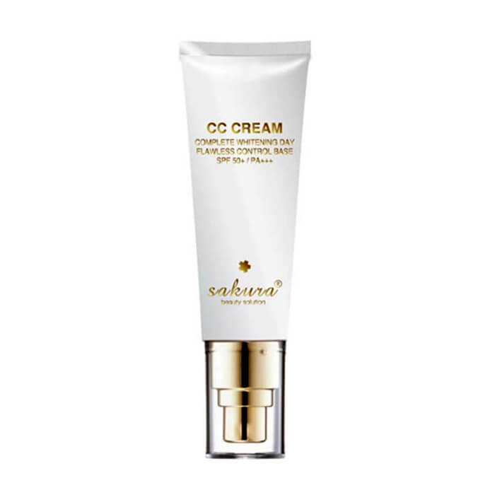 - Kem trang điểm trắng da Kem trang điểm trắng da Sakura CC Cream Flawless Control Base SPF50+ PA++++ là dòng sản phẩm trang điểm thế hệ mới Nhật Bản kết hợp cùng công nghệ Hàn Quốc cho ra đời dòng sản phẩm tích hợp cả chức năng Chăm Sóc làn da và Trang Điểm với 10 tính năng nổi bật chỉ trong một sản phẩm, cho lớp trang điểm siêu mịn mượt, sáng màu, trong suốt có khả năng dưỡng trắng sáng da dài lâu.