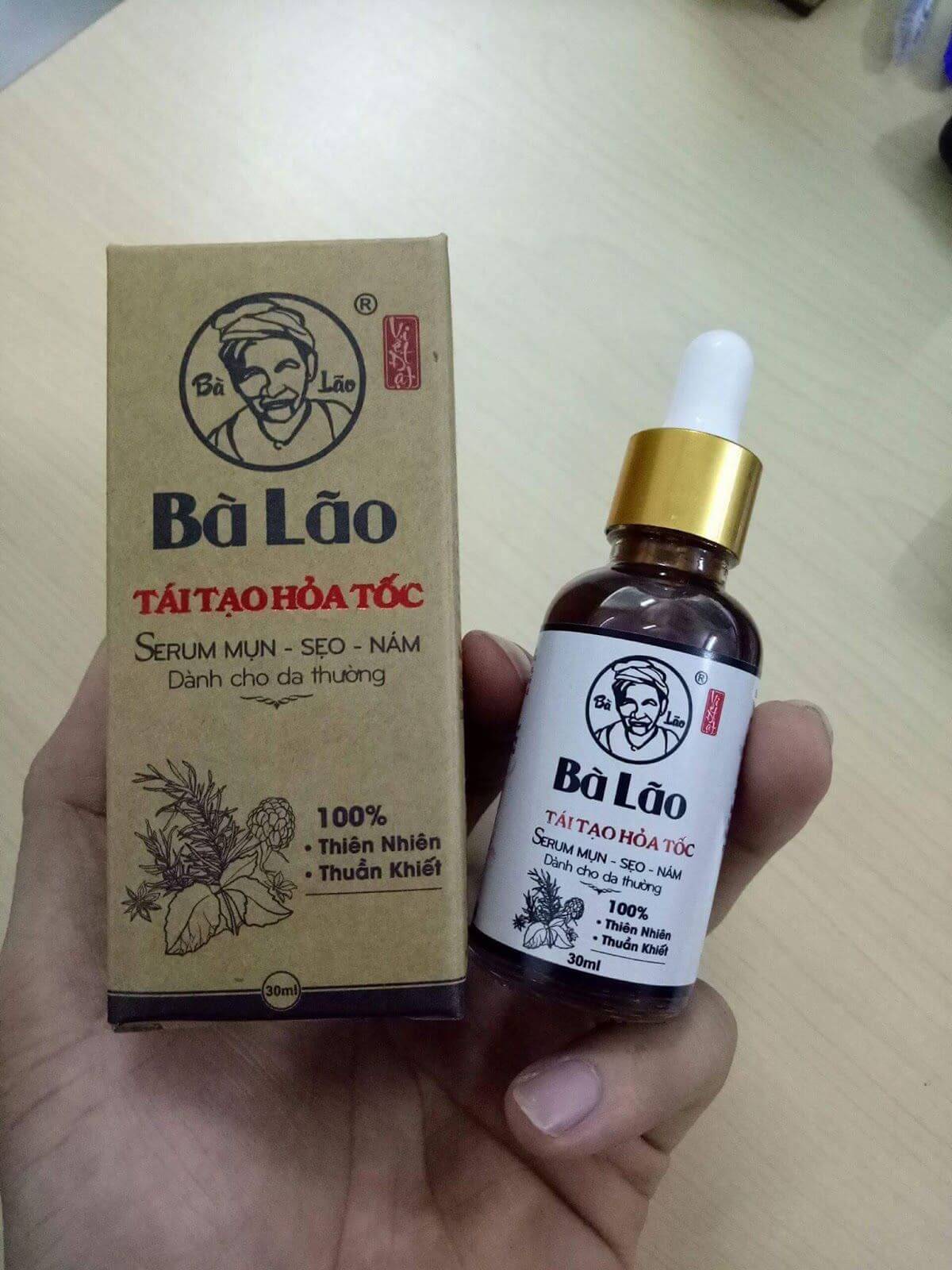 • Serum Trị Mụn Bà Lão Tái Tạo Hỏa Tốc – Dành Cho Da Thường của Công ty TNHH Bà Lão là sản phẩm trị mụn được nghiên cứu trên bài thuốc bí truyền của người Dao Đỏ, chiết xuất hoàn toàn từ thảo dược với Nhân sâm, nấm Linh Chi, tinh dầu Đàn Hương cùng 12 loại thảo dược quý. Giúp trị sạch mụn từ sâu bên trong, trị được mọi loại mụn cứng đầu và lâu năm như: Mụn ẩn, mụn viêm, đầu đen, đầu đỏ,... và hỗ trợ trị sẹo, nám, thâm hiệu quả.