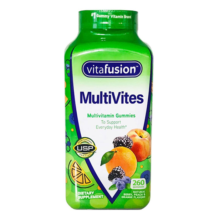 - Vitafusion MultiVites là sự kết hợp của các Vitamin và khoáng chất thiết yếu với hương vị trái cây tự nhiên trong mỗi viên kẹo dẻo thơm ngon. Cung cấp một nguồn Vitamin tuyệt vời từ 11 loại Vitamin và khoáng chất, viên kẹo dẻo tổng hợp Vitamin hoàn chỉnh này được sản xuất để thay thế các loại thuốc truyền thống vừa đắng lại khó nuốt, đem đến hương vị thơm ngon cho người dùng.