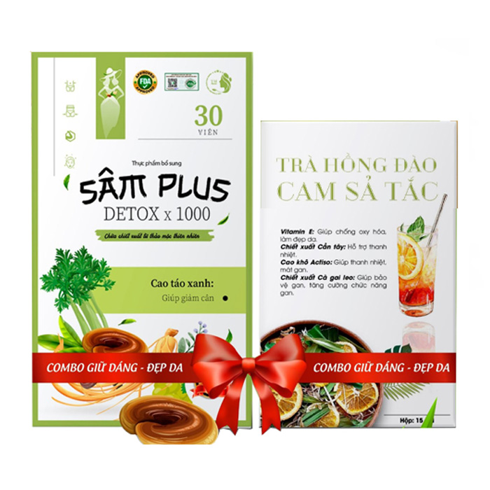 Combo giảm cân Sâm Plus Detox x 1000 và Trà Hồng Đào Cam Sả Tắc