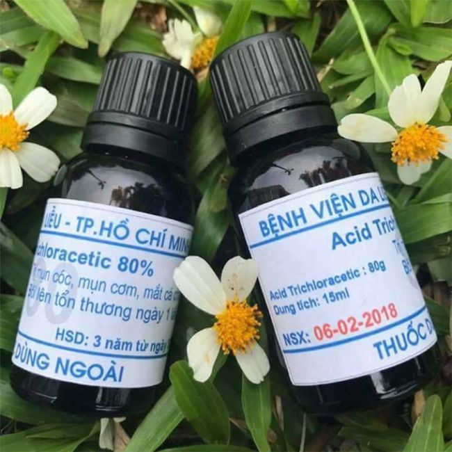 - Acid Trichloracetic 80% tiêu diệt vi khuẩn, cho hiệu quả trị mụn cơm, mụn cóc hiệu quả sau 3-5 lần chấm thuốc. (Mụn khô lại và bong vảy)