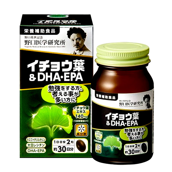 - Viên Uống Bổ Sung DHA - EPA Noguchi Của Nhật Bản với chiết xuất 100% từ lá cây bạch quả ginkgo biloba 140mg giúp não bộ khỏe mạnh, tăng cường trí nhớ, tăng tuần hoàn máu não, trị các triệu chứng của bệnh tiền đình, giúp đầu óc minh mẫn, làm việc hiệu quả, giảm stress căng thẳng, mệt mỏi.
