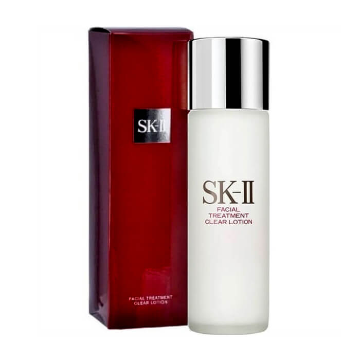 - Nước hoa hồng SK-II Facial Treatment Clear Lotion nằm trong bộ mỹ phẩm skii thần thánh đình đám khắp Châu Á một vài năm trở lại đây với thành phần chứa tinh chất Pitera và AHA loại bỏ tạp chất, bụi bẩn và tẩy nhẹ da chết giúp tăng cường tác dụng của tinh chất Essence, giúp tinh chất thấm sâu hơn.
