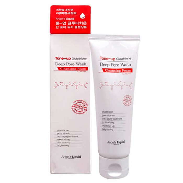 - Sữa Rửa Mặt Angel's Liquid Tone-Up Glutathione Deep Pore Wash Cleansing Foam 120ml Hàn Quốc là sản phẩm sữa rửa mặt đến từ thương hiệu mỹ phẩm Angel's Liquid xuất xứ Hàn Quốc, không chỉ giúp làm sạch sâu da mà còn dưỡng da sáng mịn, ngăn ngừa sự hình thành melanin tối màu với thành phần Glutathione đặc trưng.