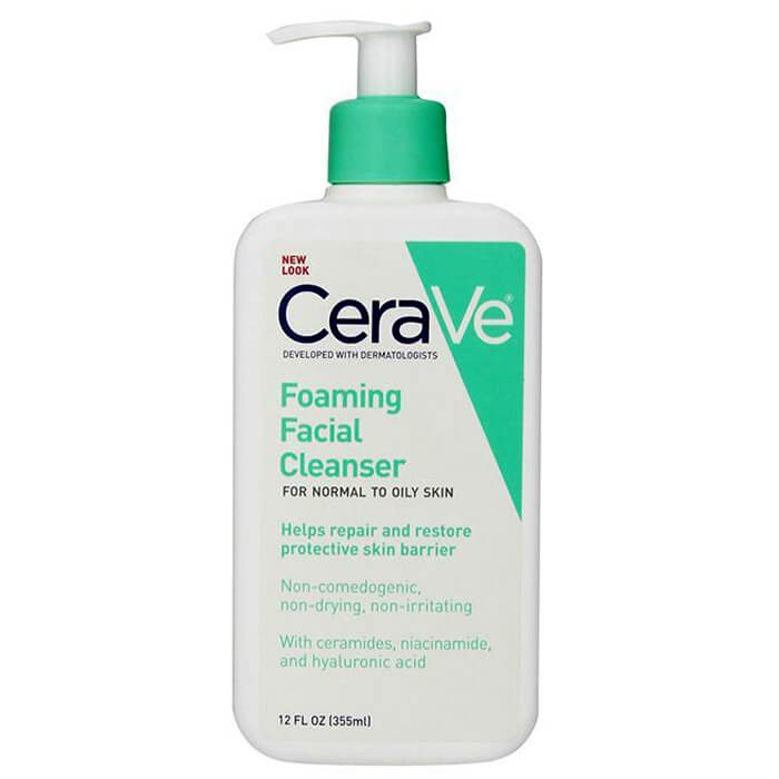- Sữa rửa mặt Cerave Foaming Facial Cleanser giúp loại bỏ bụi bẩn và chất nhờn ẩn sâu trong lỗ chân lông giúp da sạch sẽ, khô thoáng.