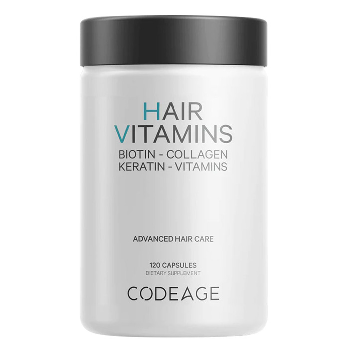 Viên uống cho tóc Codeage HAIR VITAMINS hộp 120 viên, có đủ thành phần để cải thiện nang tóc, kích thích mọc tóc, và cân bằng hệ vi sinh trên da đầu.