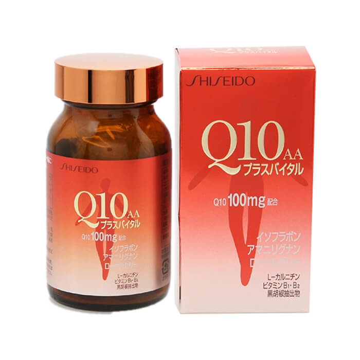 - Sản phẩm Shiseido Q10 AA 100mg – viên uống đẹp da chống nhăn còn có Hyaluronic acid, Ceramid và Collagen chiết xuất từ da cá, Vitamine E cũng như tinh chất đậu nành, chiết xuất quả nho là các thành tố cần thiết duy trì vẻ đẹp thanh xuân của phụ nữ. Coenzyme Q10 AA 100mg Shiseido bổ sung thành phần cho cả sắc đẹp và sức khỏe của bạn.