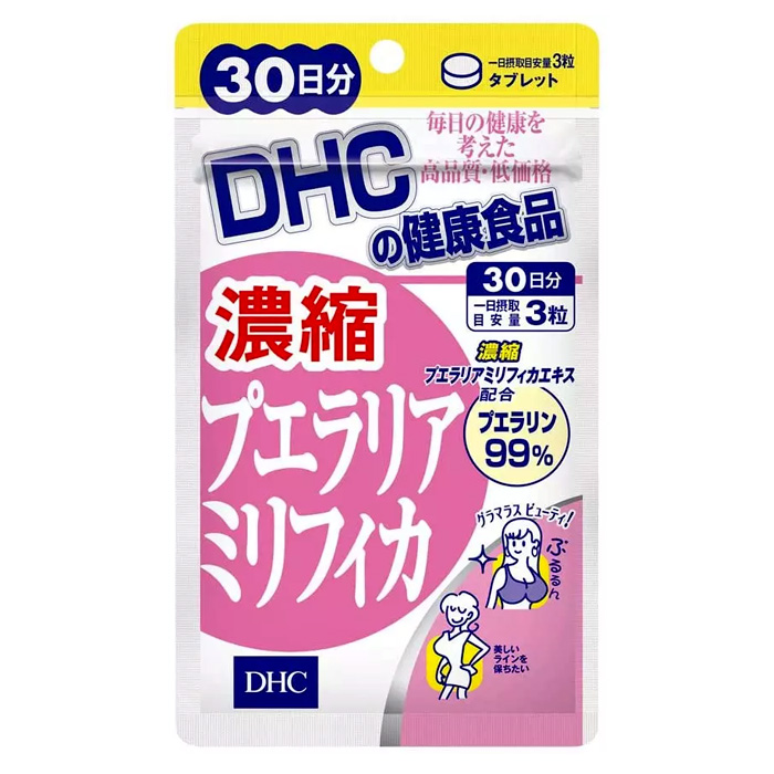 - Viên uống nở ngực DHC Nhật Bản chứa thành phần chính được chiết xuất từ Pueraria Mirifica là rễ củ sắn mọc ở rừng Thái Lan là phytoestrogen (estrogen thực vật), giúp tăng cường nội tiết tố nữ ở tuổi mãn kinh, giúp vòng 1 nở nang, vòng 3 săn chắc, làm mịn da, mượt tóc. Nó được kết hợp với Selen, Collagen có nguồn gốc từ cá, sụn cá mập Chondroitin hài hòa, giúp bổ sung và cân bằng các chất dinh dưỡng cho dáng đẹp và làn da căng mịn màng.