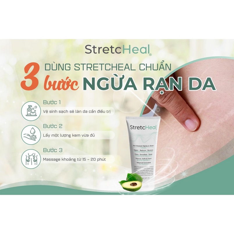 - Kem trị rạn da StretcHeal Chứa các thành phần an toàn được chiết xuất từ thiên nhiên