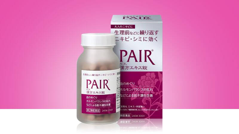 Viên uống trị mụn Pair Nhật Bản có chứa vitamin B2 và B6, chuyên để trị các loại mụn do cơ thể nóng người, hay do thiếu vitamin, hay các loại mụn của người lớn do khô da và bị stress.