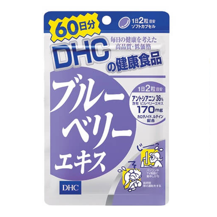 - Viên uống bổ mắt DHC được chiết xuất từ trái việt quốc tươi rất giàu chất Anthocyanin kết hợp với chiết xuất từ hoa cúc, các loại vitamin, Carotenoid và Acid a-linolenic giúp mắt sáng và khỏe, cải thiện tình trạng mỏi mắt khi làm việc trước máy tính quá lâu, bảo vệ đôi mắt khỏi cận, viễn, cải thiện trí nhớ, giúp tăng cường trí nhớ cho não của bạn.