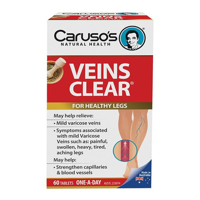 - Viên Uống Caruso’s Veins Clear Của Úc chế xuất từ hạt nho và các thảo mộc tự nhiên, hỗ trợ điều trị hiệu quả bệnh suy giãn tĩnh mạch, tĩnh mạch mạng nhện.