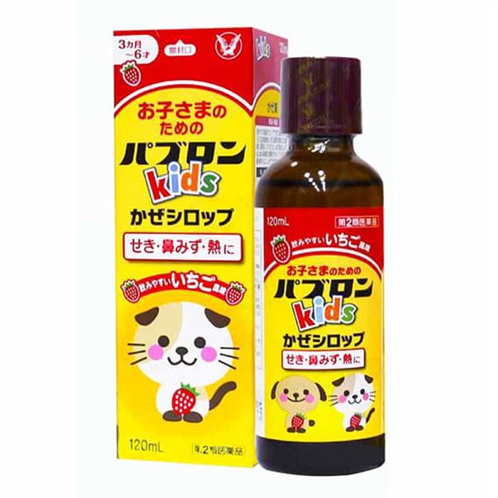 Siro Kids Cold Pabron S Nhật hay còn gọi là Siro trị ho chó mèo Nhật (vì có hình con chó và con mèo). Siro vị dâu rất dễ uống, đây là một phương thuốc lạnh cho trẻ em giúp cải thiện các triệu chứng như ho, chảy nước mũi, sốt, đau họng và các triệu chứng cảm lạnh.