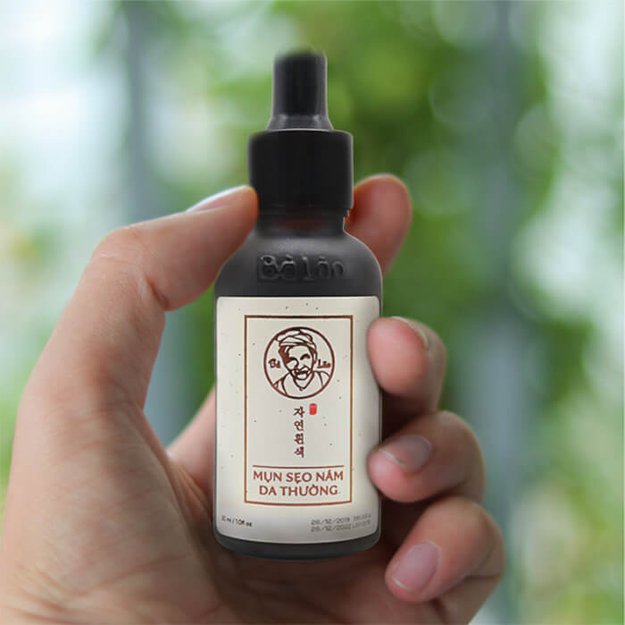 Serum trị mụn Bà Lão được điều chế từ các thảo dược tự nhiên như nhân sâm, nấm linh chi, tinh dầu đàn hương...