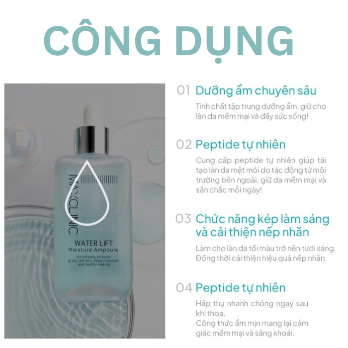 | Tên sản phẩm | Tinh chất dưỡng ẩm Maxclinic Water Lift Moisture Ampoule 100ml Hàn Quốc |