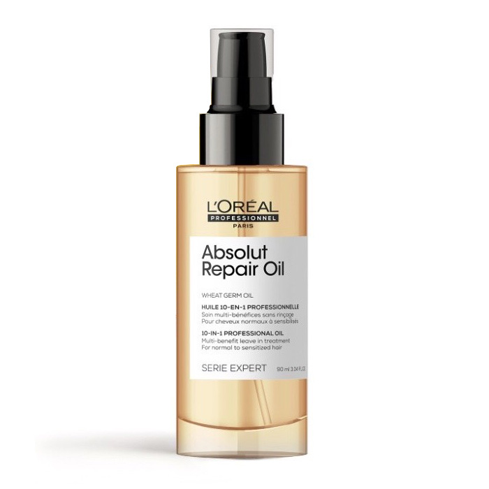 - Tinh dầu dưỡng tóc Loreal Absolut Repair Oil Serie Expert với công nghệ Lipidium tái tạo sợi tóc, mang lại độ bóng mượt.