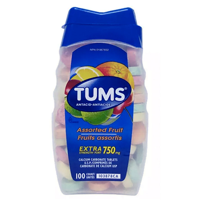 - Với hương vị trái cây, Viên nhai trị đau dạ dày Tums Assorted Fruit 100 viên của Mỹ giúp bạn giải quyết các vấn đề về bao tử, rối loạn bao tử, ợ nóng, ợ chua, đầy hơi, dư axit. Nhanh chóng giúp bạn lấy lại trạng thái tốt nhất trong bữa ăn, giúp bạn ngon miệng hơn. Ngoài ra, sản phẩm còn chứa công thức tăng cường canxi sẽ là nguồn bổ sung canxi rất hiệu quả cho cơ thể.