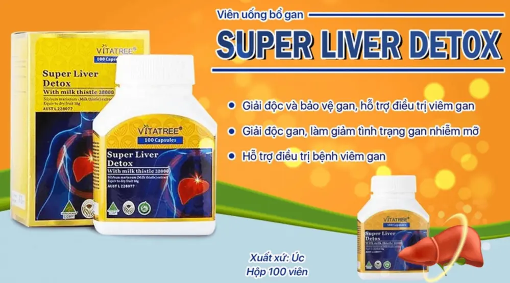 | Tên sản phẩm | Viên bổ gan Vitatree Super Liver Detox With Milk Thistle 38000mg 100 viên Úc – Hỗ trợ thải độc gan, bảo vệ sức khỏe |