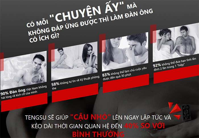 - Hiện nay, với nhu cầu cải thiện đời sống “chăn gối” của nhiều cánh mày râu nên xuất hiện các thực phẩm chức năng hỗ trợ sinh lý tràn lan trên thị trường, và trong số đó là vô số hàng giả hàng nhái dán tem mác các hãng nổi tiếng. Khi sử dụng nhầm hàng giả hàng nhái dễ dẫn đến hệ lụy về vấn đề tìn h dục cũng như sinh dục ở nam giới.