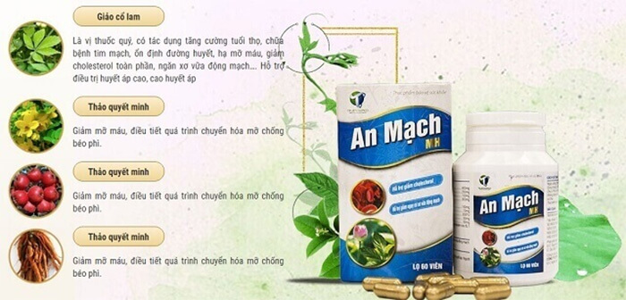 - An Mạch MH hỗ trợ điều trị cholesterol cao, huyết áp cao, và hỗ trợ ngăn ngừa các bệnh về tim mạch.