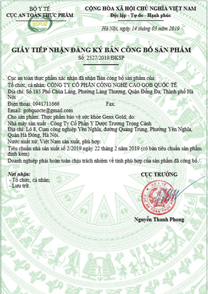 - Thành phần khác: Ngoài những thảo dược trên Gen X Gold còn chứa Đông Trùng Hạ Thảo, Chiết Xuất Hàu Biển, Kẽm Gluconate, Tỏa Dương,…