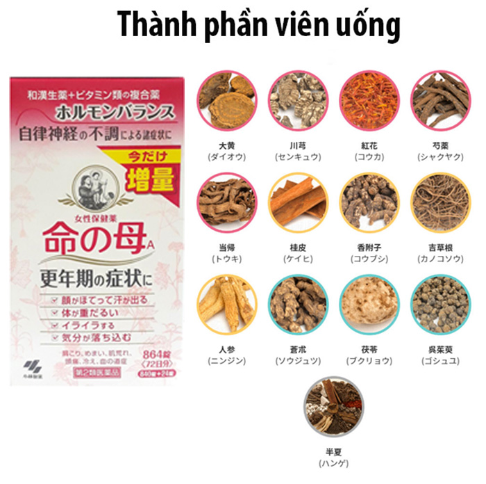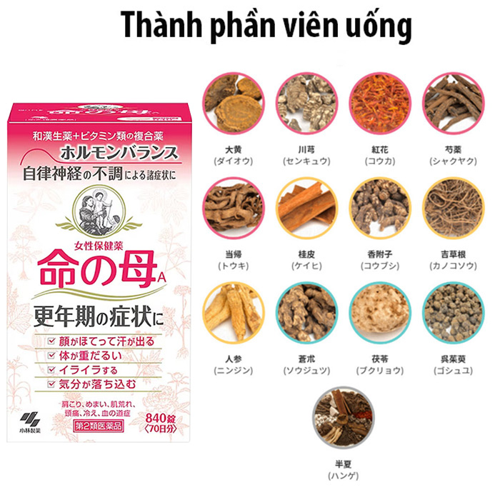 | Tên sản phẩm | Viên Uống Tiền Mãn Kinh Kobayashi Nhật Bản 840 Viên | Hỗ Trợ Cân Bằng Nội Tiết |