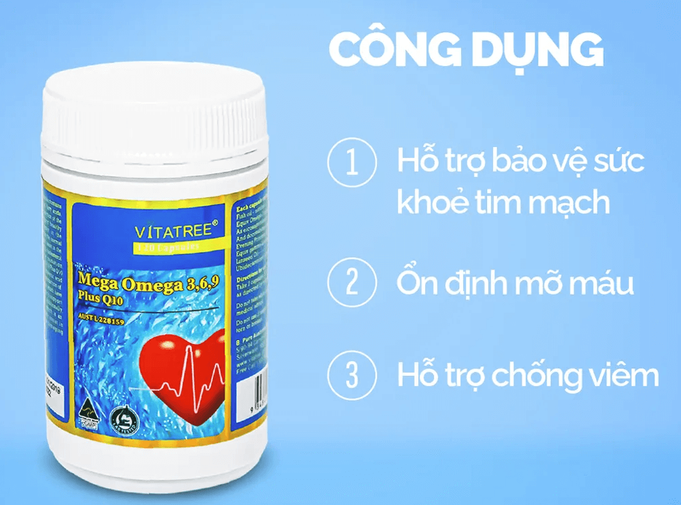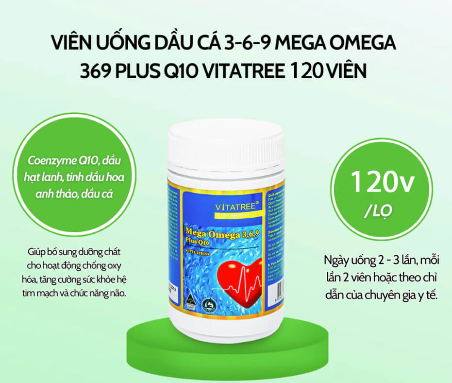 | Tên sản phẩm | Viên uống Vitatree Mega Omega 3 6 9 Plus Q10 Úc 120 viên – Hỗ trợ tim mạch, não bộ, thị lực |